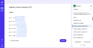 Harjoitus‑ ja kotitehtävät tehdään suurimmaksi osaksi kirjaan. Vastaustilat eivät pakota oppilasta tiettyyn ratkaisutapaan. E‑kirjan sivunumerointi noudattaa yleisopetuksen kirjan sivunumerointia.